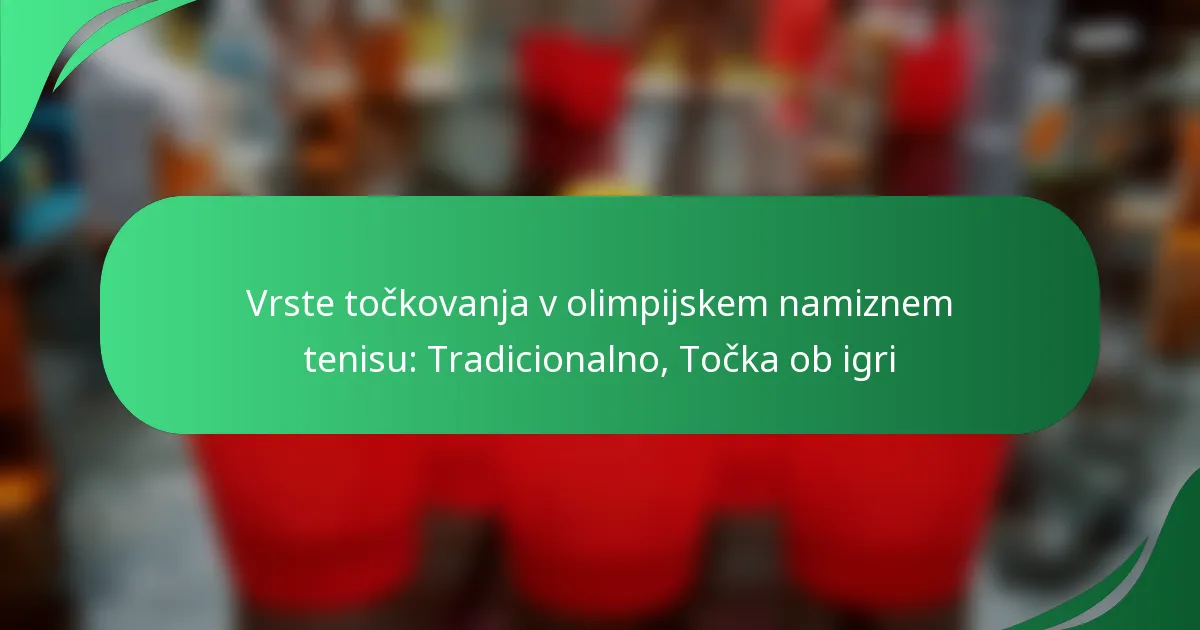 Vrste točkovanja v namiznem tenisu, torej tradicionalni in sistem točkovanja po točkah, pomembno vplivajo na uspešnost igralcev in strategije trenerjev. Razumevanje teh posledic pomaga igralcem, da učinkovito prilagodijo svoje treninge in priprave na tekme.